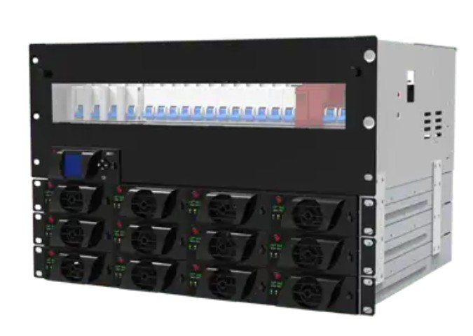 Fuente de Corriente Continua (Power Plant – rectificadores), en configuración N (simple), con capacidad de 875Amps @ -48VDC/42kW – 8U 42kW 48V DC Power Core. Ofrece una solución de sistema de alimentación eléctrica sencilla, modular y escalable con un rendimiento excepcional para aplicaciones de misión crítica, garantizando así la operatividad ininterrumpida. El sistema puede personalizarse según los requisitos específicos.